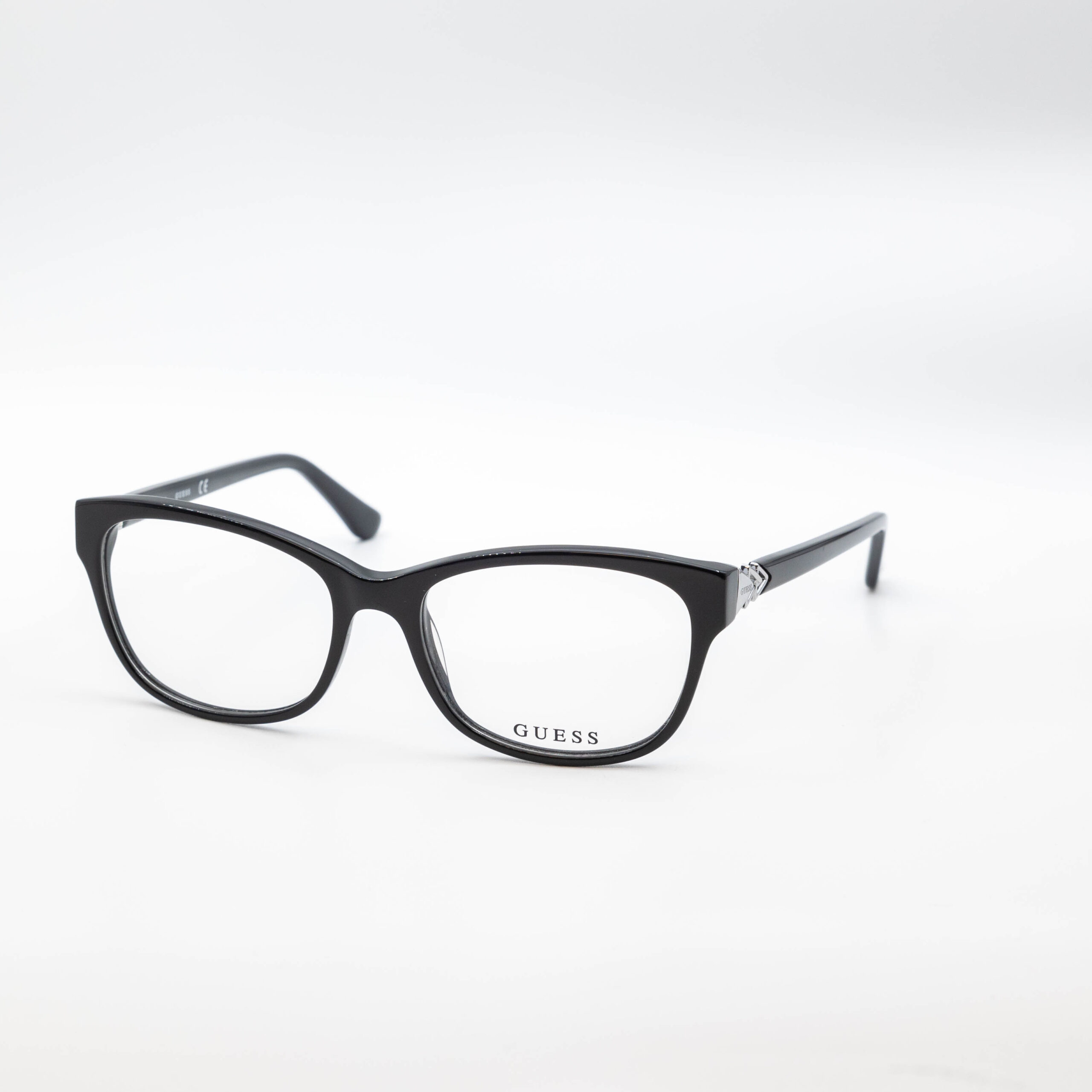 GUESS is an iconic brand that has been an innovator of fashion, watches, bags, fragrances, and eyeglass frames. Their core strengths are design, and quality, and this frame is an amazing example of both. This classic shape in black is beautiful, it also features attractive temple embellishments